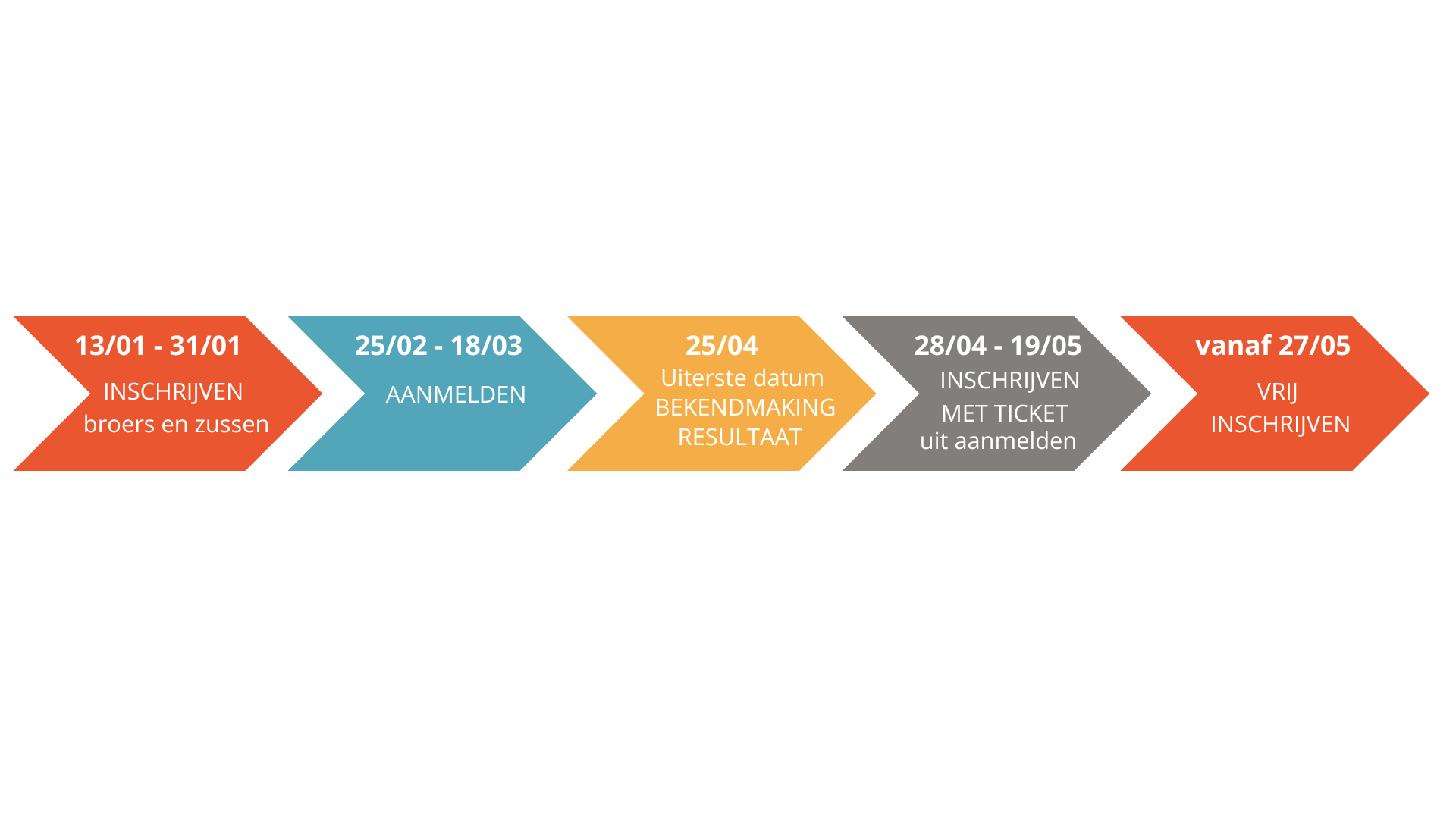 Het aanmeldingssysteem werkt met vastgestelde periodes. Je vindt ze op deze tijdlijn.